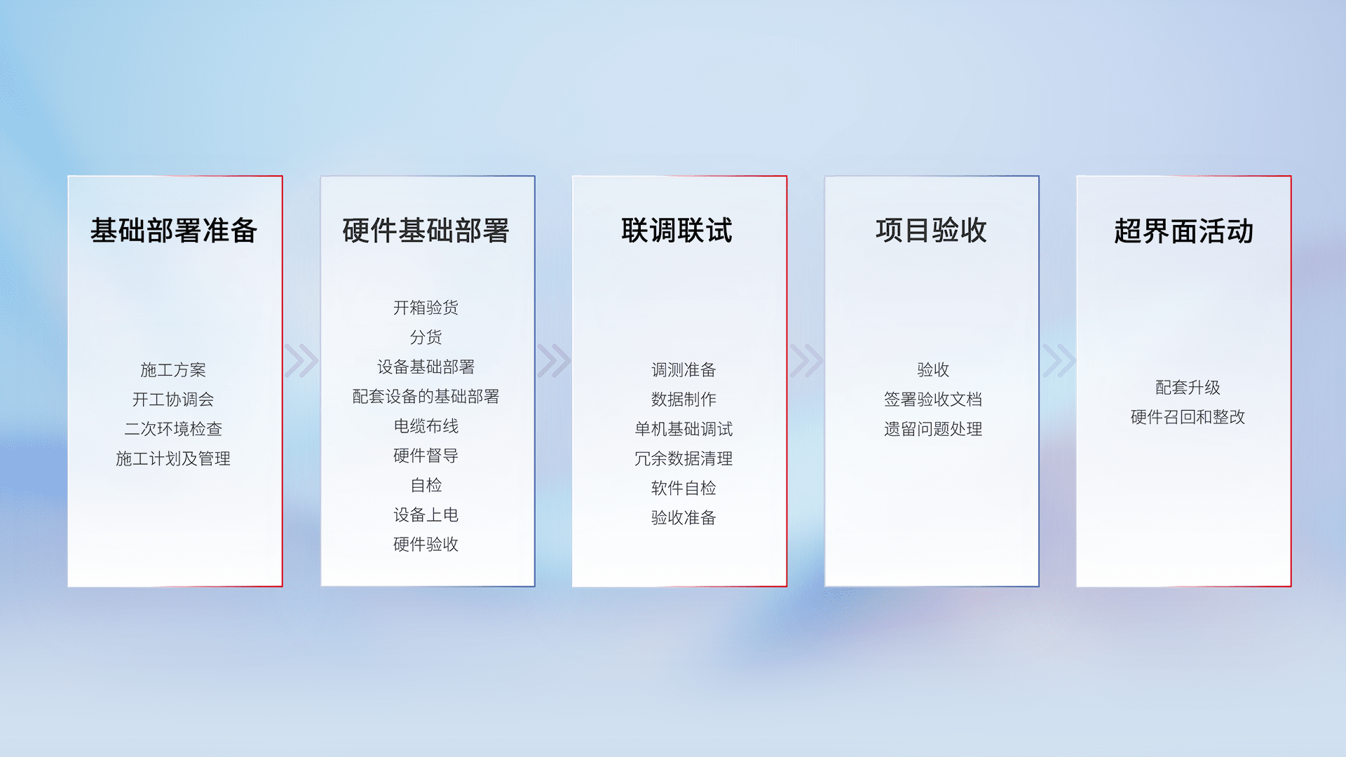 从基础部署准备、、、、硬件基础部署、、联调联试、、项目验收、、越界面活动的全过程可追溯,,,,保证施工质量和进度。。。。